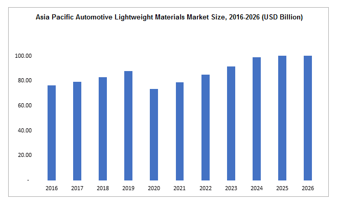 The Asia Pacific Automotive Lightweight Materials Market was USD 87.77 billion in 2019 and is expected to grow at a 7.9 percent CAGR through 2026.